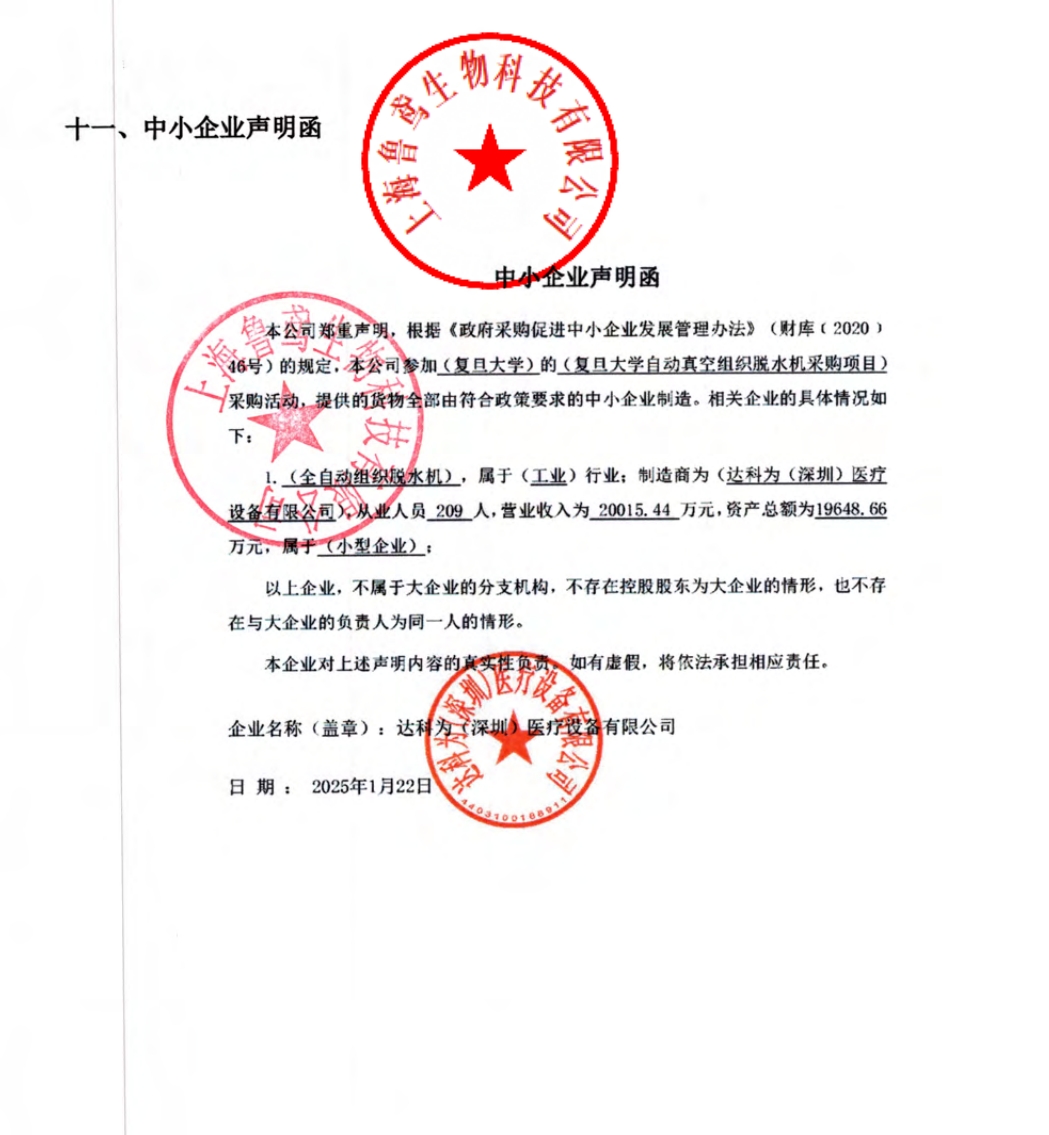 1 | 上海鲁鸢生物科技有限公司 | 自动真空组织脱水机 | 达科为(深圳)医疗设备有限公司 | HP300 | 347,350.00 | 1套 | 347,350.00 |